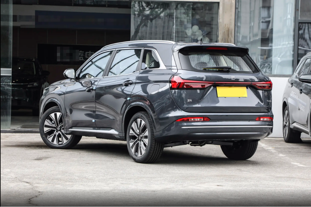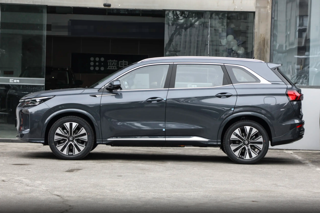 车身侧面采用了时下流行的悬浮式车顶设计,配合机械门把手和低风阻轮毂,搭配流畅的腰线设计,既保留了SUV的硬朗气质,又增添了新能源车型特有的未来感。尾灯组同样采用贯穿式设计,与前脸形成呼应,内部灯腔结构经过精心设计,呈现出立体渐变的光影效果。